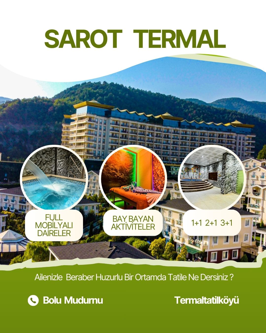 👉 SAROT TERMAL TATİLKÖYÜ’NDE TATİL FIRSATI! ♨️🌲 📞 👉 0554 587 61 58 ♨️ SAROT TERMAL TATİLKÖYÜ ♨️ 👉 Doğa + Şifa + Konfor = Mükemmel Tatil 🌿 🔥 SAROT TERMAL TATİLKÖYÜ – ŞİFA VE LÜKS TATİLİN ADRESİ ♨️🌿 🌟 SAROT TERMAL TATİLKÖYÜ’NDE YERİNİZİ 👉 ŞİMDİ AYIRTIN! 🌟 💎 NEDEN SAROT TERMAL? 👉 ✔️ Şifalı 👉Termal Havuzlar ♨️ ✔️ Aileye 👉 Uygun Geniş ve Konforlu Daireler 🏡 👉 1+1 🏡 2+1 🏡 3+1 ✔️ Temiz Hava, Doğa ve Huzur 🌲 ✔️ Yatırımlık ve Tatillik Fırsatlar 💰 ✔️ İstanbul’a Yakın Kaçış Noktası 🚗 📍 Bolu Mudurnu’nun En gözde Termal Tatil Noktası ✔️ Termal Havuzlar ✔️ Güvenlik ve Site Hizmetleri ✔️ ♨️ SAROT TERMAL TATİLKÖYÜ ♨️ 🌿 Doğayla iç içe, şifalı ve konforlu tatil fırsatı! SAROT TERMAL TATİLKÖYÜ’NDE YERİNİZİ ALIN ♨️